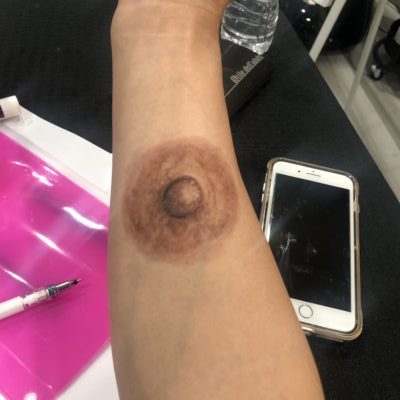 The micropigmentation procedure is preceded by signing the consent agreement by the patient. The procedure device is sterile, needles are disposable. During the consultations the patient participates in a selection of pigmented area and in the selection of the appropriate colour of an areola. The treatment is preceded by local anesthesia. The procedure duration is 40 – 90 minutes. In order to achieve the desired effect, a series of 2 treatments is usually performed at intervals of 8 – 12 weeks. After the procedure the patient functions normally. However, she should not use some cosmetics, should avoid excessive physical effort and the sun.