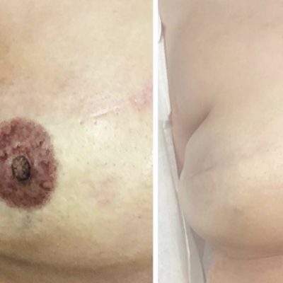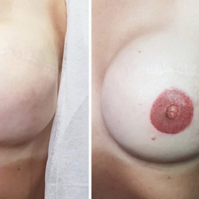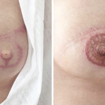 Breast reconstruction surgery allows to regain the psychological well-being of women after mastectomy. Complementing it with the micropigmentation of the nipple and the areola results in a natural breast appearance. The interval between procedures should be at least 6 months.
